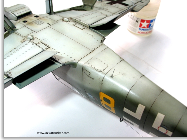 Eser miktarda macun kullanılarak tesviye işlemleri de bitirildikten sonra boyama safhasında Gunze Sangyo nun akrilikleri kullanıldı.Klasik savaş sonu renkleri olan gövde altı RLM 76 gövde üstü ise RLM 75 ve RLM 83 ile boyandı.