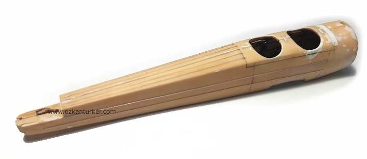 Doksanlı yılların ortalarında bir poşet içersinde elime geçen model artıklarından birisi. Hunharca birleştirilip boyanmış ve daha sonra da çöpe gönderilmiş bir model. Yaparım diye uzun bir zaman tuttuktan sonra sıkılıp başka bir mecraya yollamıştım. Nasıl olduysa yine dönüp dolaşıp bana geri gelince vardır bir hikmeti diyerek yine karanlık ve derin kutulardan birisine göndermiştim. Nedense geçenlerde hadi artık başla cihetinden bir mesajla tekrar tezgaha çıkardım.