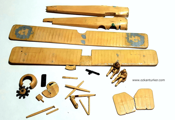 Şimdi anlıyorum ki o yıllarda bu modeli restore etmeye çalışsaydım büyük ihtimalle yarım kalır ve çöpe giderdi. Bunca zaman boşa beklememiş. Bilgi ve tecrübenin yanında daha fazla imkana sahip olduğumuz bu dönem modeli tekrar ve daha iyi şekilde yapabilmek için doğru zaman sayılır. Model Smer markası tarafından 1958 yılında piyasaya sürülmüş. Günümüz standartlarına göre oldukça basit, az parçalı ve detaysız bir model. Tahminim bu model 70'li yılların sonunda alınıp o zamanın koşullarında yapılmış. Temel parçaları birarada olsa da bazı parçalar zaman içinde kırılıp kaybolmuş. Günümüzde sulu çıkartma olarak verilen işaret, numara vs gibi detaylar üretildiği dönemin bir fantezisi olarak plastik üzerine kabartma olarak işlenmiş. O dönem için bir kolaylık gibi görünse de günümüzde bu detayların silinip temizlenmesi oldukça can sıkıcı bir iş. Bütün parçaları kalan boya artıklarından temizleyip ciddi bir tesviye, dolgu, astar kampına soktum. Günümüzde kolayca ulaşabildiğimiz dökümanlar sayesinde modelde olmayan detayların bir listesini çıkardım. Bunların bir kısmını modelleyerek üçboyutlu yazıcı marifetiyle ürettim. Motor, amartisörler, dikmeler, kokpit, koltuklar, tekerlekler, pervane, kızak ve yakıt deposu bu şekilde ortaya çıktı.