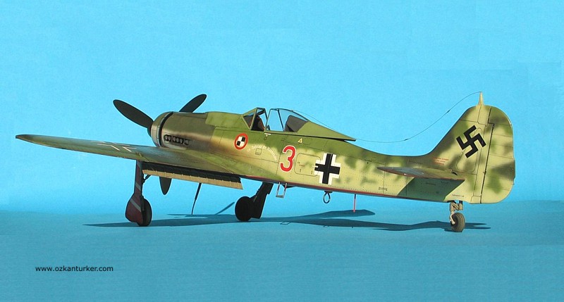 Modeli yapılan uçak Papageienstaffel de kullanılmış “Kırmızı 3” numaralı Fw 190 D9 . Eagle Cal’un çıkartma setinde yer alan bilgiye göre kuyruk numarası bilinmeyen bu D9 pilot Waldemar Wübke tarafından 1945 mayıs’ında Almanya Ainring havaalanında kullanılmış.