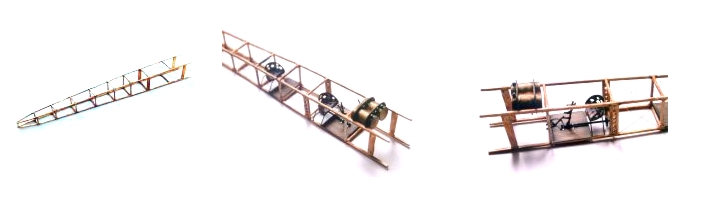 Proje çalışması 1/5 ölçekli model planının 1/32 ölçeğe küçültülmesi ile başladı. Modelin yapımına gövdeyi oluşturan ağaç malzemenin hazırlanması ile başladım. Oldukça ince olan gövde çıtaları için 1.5 mm. lik sert balsa çıtaları çok ince zımpara (1200) ile temizleyip düzelttim. Böylece çıtaların kalınlığı da azalmış oldu. Daha sonra gövde yan görünüşü üzerine çizdiğim ağaç iskelet yapıyı bu çıtalarla uçucu bir model yapar gibi yaptım. Tamamlanan gövdeye ince bir kat vernik sürdükten sonra daha koyu bir ağaç görüntüsü alması ve belirgin olması için kahverengi yağlı boya ile boyayıp boyanın fazlasını sildim. Daha sonra gövde üzerindeki çapraz takviye tellerini yapmaya başladım . Bunun için ince bakır tel kullandım. Pergel ile bölme aralarındaki mesafeyi hassas olarak ölçüp telleri kestim ve CA ile yapıştırdım. Montajı biten bütün teller parlak siyah ile boyandı. Bütün bu işlemin yapılması üç günlük bir çalışma ile bitti.