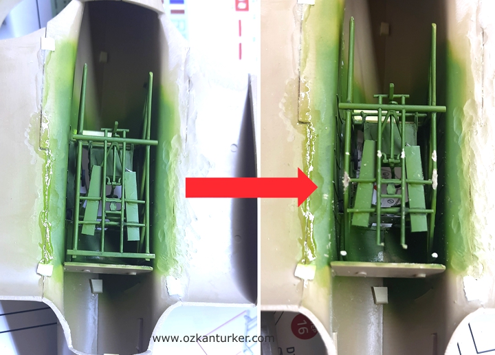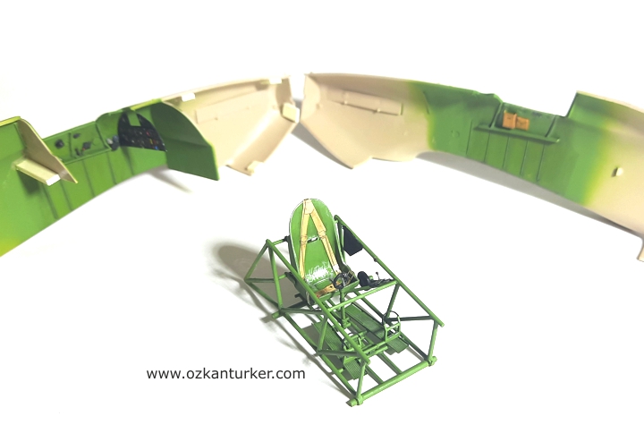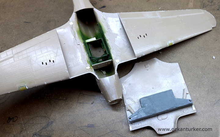 Kokpit iskeletinin gövde birleştirdikten sonra alttan yerleştirilebilir olması hoşuma giden bir ayrıntı oldu. Böylece gövdenin macun ve tesviyesi sırasında kokpit kirlenmedi.