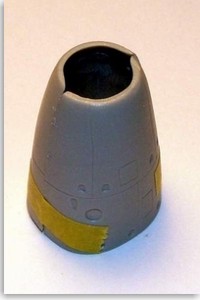Esas ciddi sorun motor hava girişlerinde. İki parçayı birleştirince maalesef pek de daireye benzemedikleri ortaya çıktı. Bu bölüm sanırım modeldeki en ciddi problemlerden biri. Hava girişlerinin önüne birer adet sytren halka yapıştırıp macun ile bu bölümü tedavi ettim.