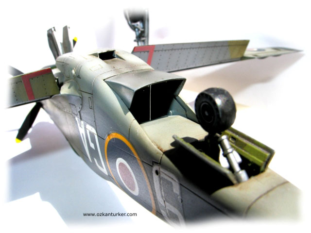 Vernik ve çıkartma işlemlerini takiben yağlı boya eskitme tatbik edildi.Daha sonra kanopi parçaları tekerlekler ve egzostlar boyanarak yerlerine monte edilerek matlaştırmaya hazır hale getirildiler. Gunze mat vernik uygulamasından sonra zayıf bir egzost izi ile model bitirildi.