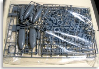 Parçalar klasik Hasegawa formatında ; firmanın önceki büyük ölçekli ürünlerinden aşina olduğumuz gibi çerçeveler iki ayrı grupta poşetlenmiş. Buna ilave olarak bir yapım kitapçığı, büyükçe bir ıslak çıkartma seti ve şeffaf parçaların bulunduğu ayrı bir poşet yer almakta. Kutuda yazılanlara bakılırsa içeride 167 adet parça bulunmakta. Çerçeveler sayılası değil,çok sayıdalar. Ve renk olarak her zamanki gibi Hasegawa grisine sahipler.