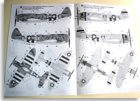 Kanatların kenarlarındaki ve altındaki ışıklar da şeffaf parçalardan oluşmakta. Bitince hoş duracaklar. Islak çıkartma sayfası oldukça iri. Görünüm ve kalınlık iyi gibi duruyor. Üç ayrı uçak yapılabilmekte. Bunlardan ikisi Francis Gabreski’nin P-47 sinin 4 ve 20 Temmuz 1944 deki farklı durumları. Diğeri ise 1945 başında Glenn Eaglestone’un Fransa da kullandığı P-47 Thunderbolt.