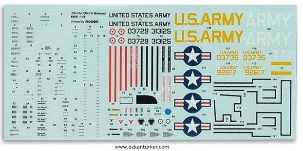 Pilotların yan yana oturduğu, ön kısmı geniş bu uçağın bir böceğin gözlerini andıran garip bir görünüşü vardı. T biçimli orijinal kuyruk tasarımının aksine üretim öncesi modeller üç yön dümenli geleneksel bir tasarımdaydı. Dokuz adet üretim öncesi model ile yapılan test uçuşları 1961’e kadar sürdü. Aksaklıklar giderildi ve model üretim için onaylandı. Tanım kodu artık OV-1 olarak değiştirilmiş ve ufak bir Kızılderili kabilesi olan “Montauk” adı verilmişti! Fakat söyleniş zorluğu nedeniyle (birkaç kere içinizden tekrarlayın, montauk, montauk , monta...) İsim daha çok bilinen başka bir kabile, “Mohawk” ile değiştirildi. İlk üretim serisi Mohawk’lar Amerikan ordusunda kullanılan ilk turbo-prop motorlu uçaklar olarak, Batı Almanya’daki Amerikan 7. Ordu’sunda hizmete girdiler. İlk modeller foto-keşif görevlerinde kullanılmak üzere gece de çekim yapabilen KA-60 fotograf makineleri ile donanmıştı. Uçak bakım bölümleri ve pilotlardan gelen öneriler doğrultusunda bazı değişiklikler yapıldı ve elektronik donanım geliştirildi. Daha sonra, artan görev talepleri sonucu kanatlardaki pilon sayısı artırıldı. Bunun sonucu olarak değiştirilen kanat tasarımı sayesinde kanatlardaki 6 adet pilonda Mohawk 2.75 inçlik roketler, ek yakıt depoları, bombalar taşıyabilir hale geldi. Modifiye edilmiş 6 adet Mohawk “JOV-1A” olarak tanımlanmış şekilde, savaş alanında test edilmek için Vietnam’a gönderildiler. Bu kısa deney, Kara Kuvvetlerine, havacılık konusunda Hava Kuvvetlerinin daha etkin olduğunu gösterdi. JOV-1A deneyi durduruldu. OV-1A olarak tekrar tanımlanan uçak, yer birliklerini destekleme görevlerinden çekilmiş olsa da kanatlardaki pilonlar sökülmeden bırakılan ve sıklıkla buralarda savunma silahları ile donatılan Mohawk, foto keşif, hedef izleme, hava istihbarat görevlerinde başarıyla kullanıldı. Model : Ukraynalı üretici Roden, genellikle gözardı edilmiş 1. Dünya Savaşı uçak modelleri ile uğraşan bir şirket. Bu tür uçaklar hiç ilgimi çekmediği ve benim kısıtlı yeteneklerimle kotarılamayacak gibi göründüğünden, şimdiye dek hiç bir modellerine bulaşmadım. Geçenlerde, internette eşelenirken bir sitede bu uçağın 1/48 ölçekli modelinin Roden tarafından üretilmiş olduğunu müşahade ettim. Aslında bu tür “teşhis” ler, modelin fiyatına dikkatle bakılınca hüsrana dönüşse de, bu öyle değildi. Resin filan değil, düpedüz bildiğimiz enjeksiyon kalıp modeldi işte.. Yapmayı hep istediğim bu garip görünüşlü uçağı alıp hemen yapma düşüncesi, İnternetten alışverişteki; doldurulacak satırlar, yazılacak rakamlar, onaylıyormusunuz? evet - hayır, e-mail şifresi, üyelik zımbırtısı, vs. vs, ile boğuşmaya üşendiğimden bir süre –pek çok proje gibi- rafta kaldı. Taaa ki, iki üç gün önce başka bir şey ararken Ankara'daki Hobbytime adlı mağazanın internet sitesinde bu modeli görene kadar !! İnanılmaz bir şekilde, fiyatı yurtdışındaki ile aynıydı. Hem 312 alan kodu marifeti ile, bakkaldan “bir ekmek, bi sana, bi tane de duble kanatlı orkit” ister gibi, isteyebilirdim. İstedim de...Telefondaki hanımefendiye ne istediğimi bildirip, karşılığında banka hesap numarasını aldım. O da bana %6 indirim yaptı. “Ulan, camiada ağırlığım var, adımızı söylemek bile yetti, indirim yapıyorlar” diye düşünmekle birlikte pek belli etmedim. Fakat, sonradan bana söylendiğine göre, peşin ödemede bu indirimi herkese yapıyorlarmış. (Neyse. Ben, ilk teze inanmayı tercih ediyorum) Heyecan kasırgası 24 saatten az bir sürede nihayete erdi, hemen o akşam kargoya verdiler ve ben de sabah aldım.