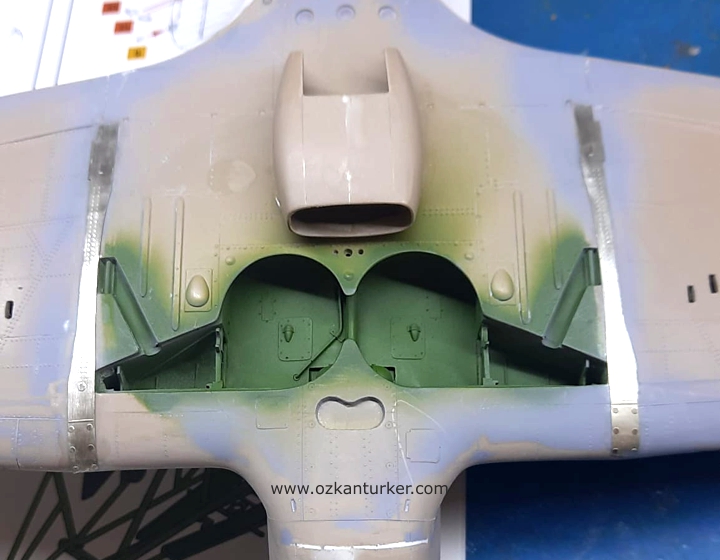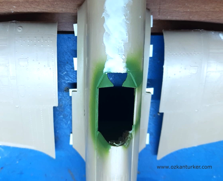 Kokpit iskeletinin gövde birleştirdikten sonra alttan yerleştirilebilir olması hoşuma giden bir ayrıntı oldu. Böylece gövdenin macun ve tesviyesi sırasında kokpit kirlenmedi.