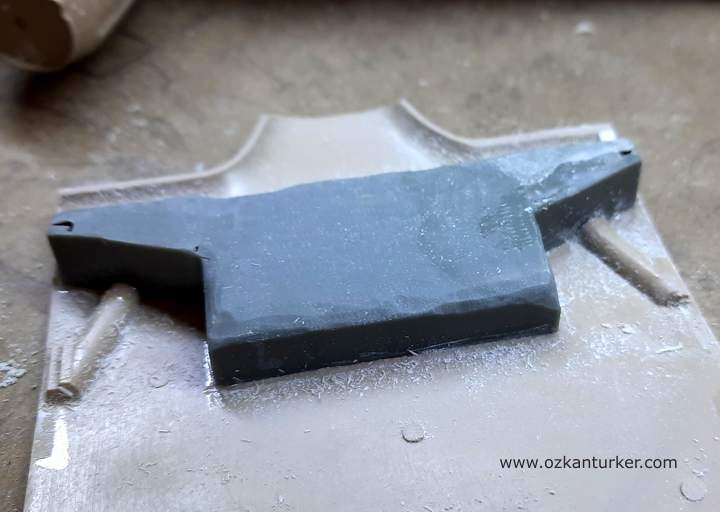 Orta kanat tesviye ile düzelttiğim halde yerine oturmamakta ısrarcı oldu. Bunun nedeni kanat içindeki resin iniş takım yuvasının kalın olmasından kaynaklandığını anladım. Döküm parça yüksek olduğu için kokpite dayanıyor ve oturmuyordu. İşin kötü tarafı bu kısmı neredeyse kağıt kalınlığında bir duvar bırakana kadar inceltmeme rağmen yine de oturmadı.